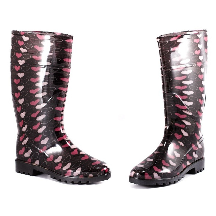 Cizme din silicon, rezistente si usor de curatat, decorate cu inimioare pentru un design jucaus si modern. Ofera protectie impotriva apei si umezelii, fiind ideale pentru zile ploioase. Confortabile si practice, perfecte pentru utilizare zilnica.