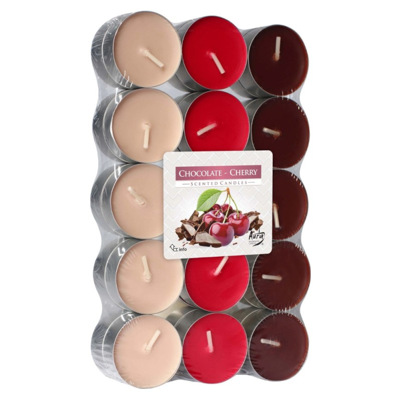Set de 30 de lumanari tip pastila, cu aroma intensa si delicioasa de ciocolata combinata cu note fructate de cirese. Ofera o lumina calda si un parfum dulce, perfect pentru a crea o atmosfera cozy si relaxanta. Ideale pentru seri linistite, decor romantic sau momente de rasfat acasa.
