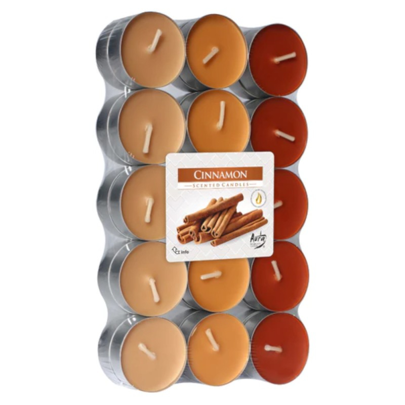 Set de 30 de lumanari tip pastila, cu aroma calda si condimentata de scortisoara. Ofera o lumina blanda si un parfum placut, perfecte pentru a crea o atmosfera cozy si festiva. Ideale pentru decorul de sarbatori, aromaterapie sau serile relaxante petrecute acasa.
