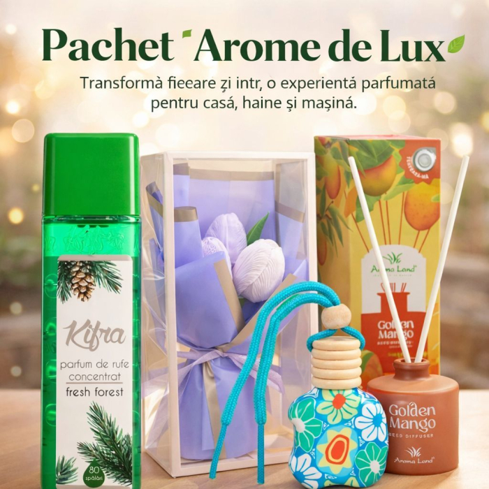 Transforma fiecare zi intr-o experienta parfumata cu acest set complet de arome premium. Pachetul Arome de Lux este conceput special pentru a-ti improspata intreaga lume: de la hainele preferate pana la atmosfera din casa sau masina.