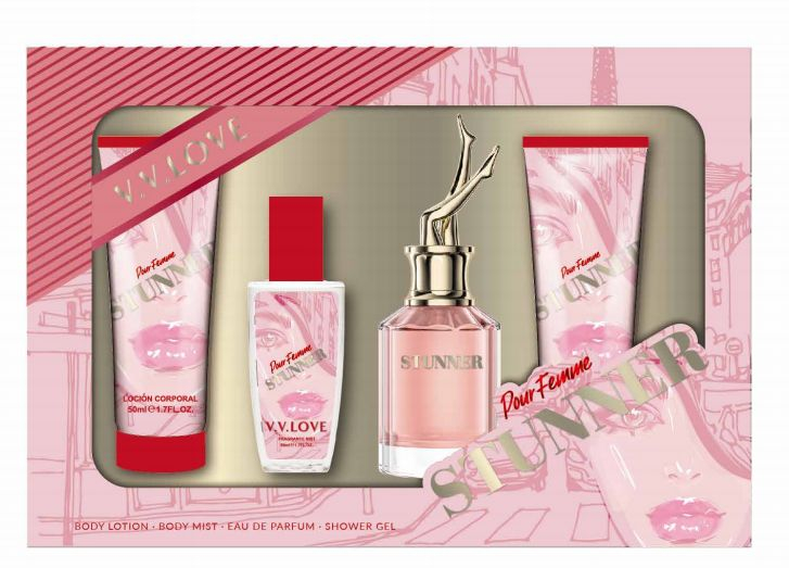 Setul include parfum, body lotion, shower gel si body mist, produse concepute pentru a se completa reciproc. Parfumul ofera persistenta si eleganta, lotiunea hidrateaza delicat pielea, gelul de dus curata si lasa un miros placut, iar body mist-ul este ideal pentru reimprospatare rapida pe parcursul zilei.