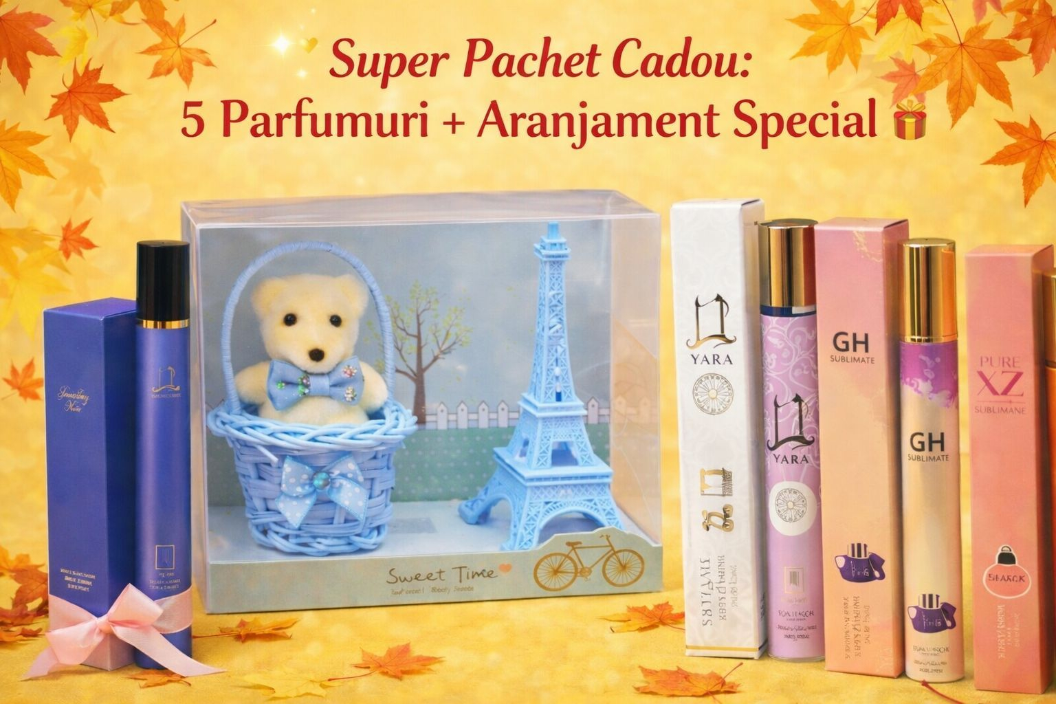Set de 5 Parfumuri (35ml): O selectie variata de arome populare, printre care Yara, GH Sublimate si Pure XZ. Perfecte pentru a fi purtate in poseta si folosite in orice moment al zilei.